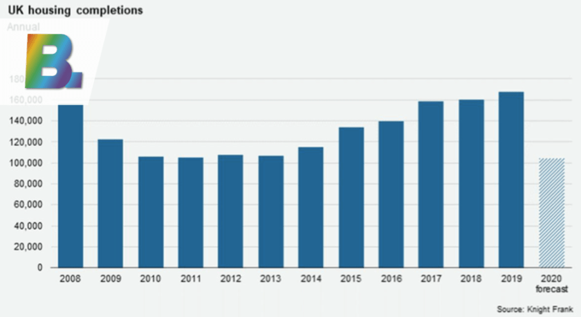 [1] Knight Frank projection compared to OBR March estimate of private housing delivery in 2020.