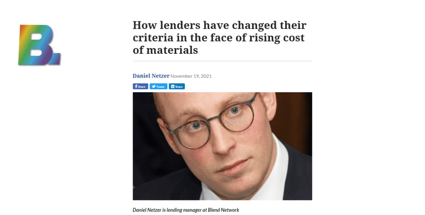 Earlier this month, Dani Netzer, Lending Manager at Blend Network, shared his thoughts in Mortgage Introducer magazine on how lenders have changed their criteria in the face of rising cost of materials. If you missed it, you can read it in this link or below.
